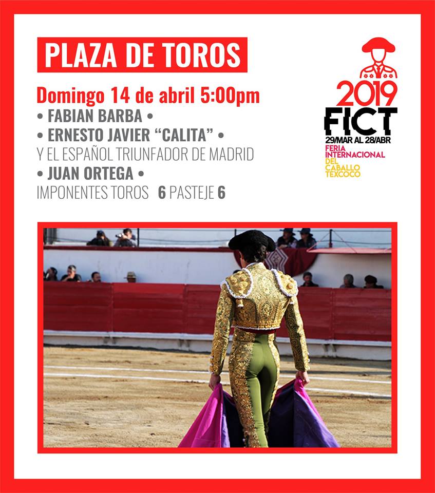 Uno de los mejores atractivos de la Feria del Caballo Texcoco 2019 será su fiesta brava. Que como cada año presenta excelentes corridas de toros con los mejores exponentes del toreo nacional e internacional.